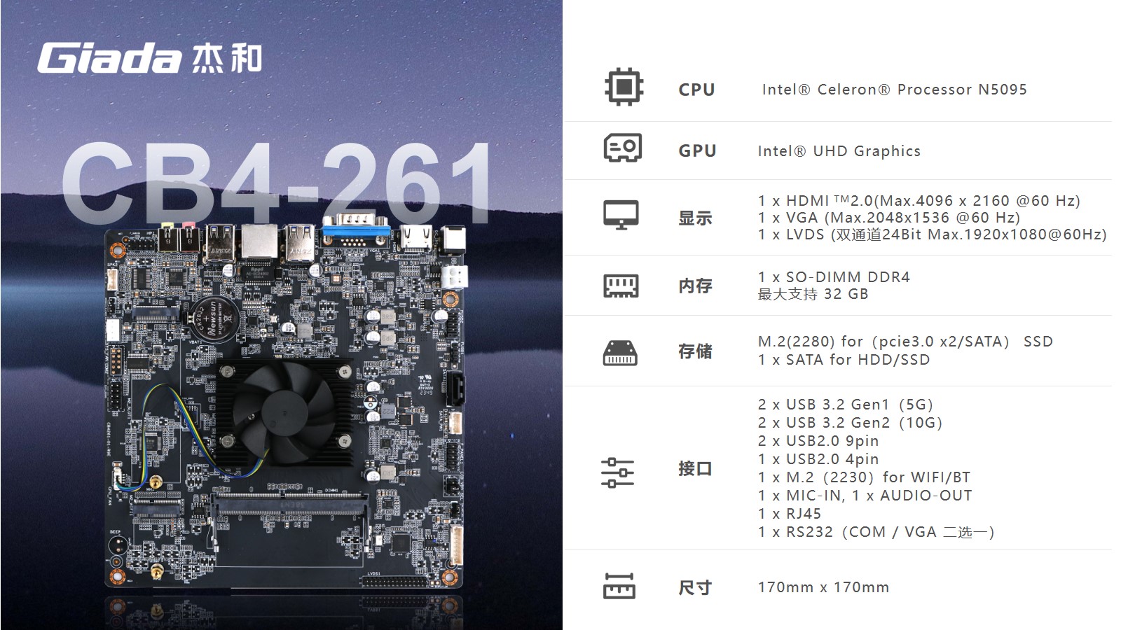 一款高性能的主板是终端机稳定运行的关键,基于Intel Jasper Lake平台的N5095芯片,沐鸣电子科技推出了一体机专研主板CB4-261。