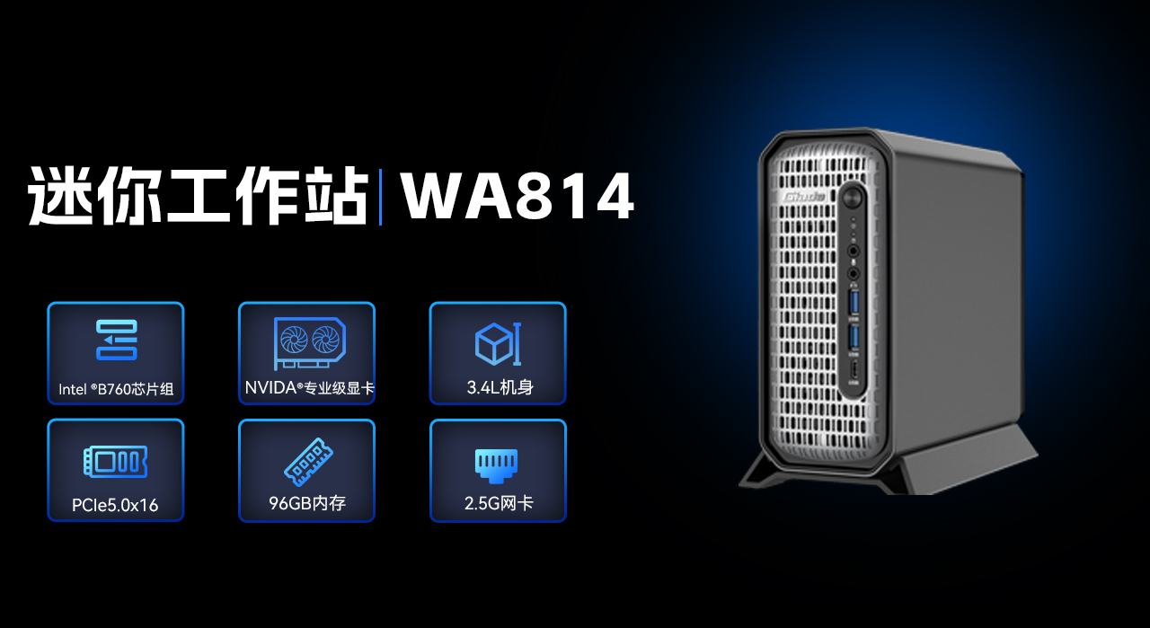 沐鸣电子科技专业迷你工作站WA814,可在小型办公室使用或者外出携带,常应用于3D建模、动画渲染、数字内容创作、AI训练等场景。在工业及交通领域,满足视频监控、环境监测、工业自动化中长时间不间断处理大量数据的需求。