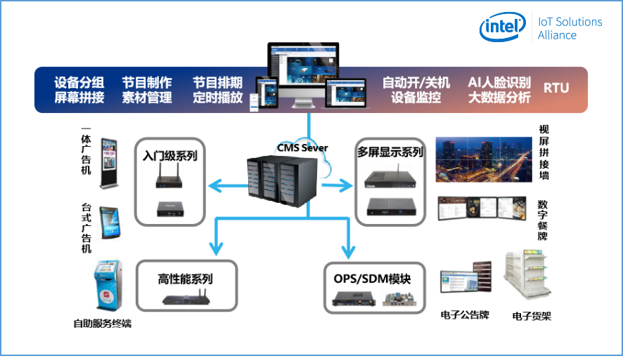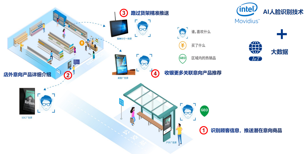 为了更好的迎合产业发展的趋势,对产业输出新鲜的营销理念和模式,驱动零售业数字化、智慧化管理模式的进一步升级,沐鸣电子科技集成了Intel®Movidius视觉识别技术和OpenVINOTM人工智能视觉学习技术,自主研发了沐鸣电子GDSM智慧商显平台。更凭借多年硬件开发经验,形成一套完整、切实的精准营销方案,获得了Intel®MRS市场方案认证。