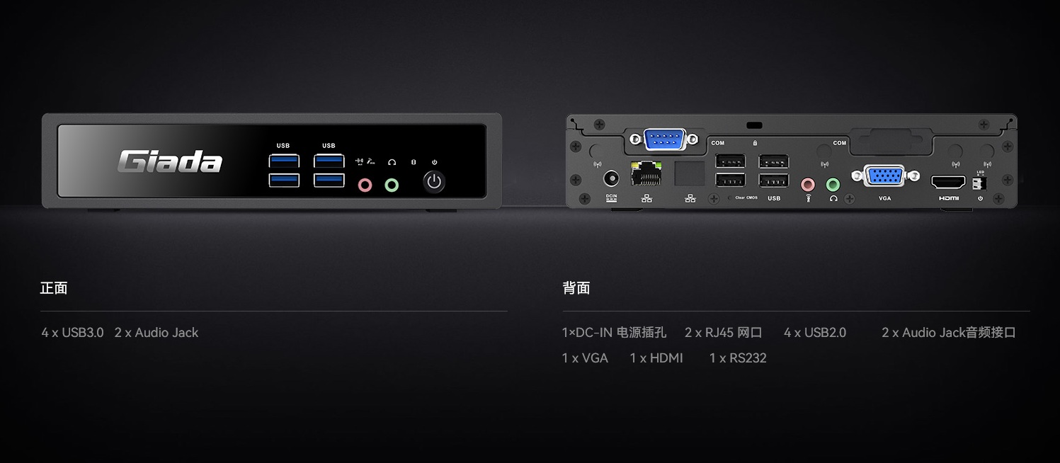 沐鸣电子云终端BW612机身背面配备四个USB2.0接口,两个3.5mm 音频接口,两个千兆网线接口,一个VGA和 HDMI 接口,兼容几乎全部主流外设,满足云终端全场景接口使用需求,同时正面配备两个3.5mm音频接口,四个USB3.0接口,满足即插即用的设备需求。