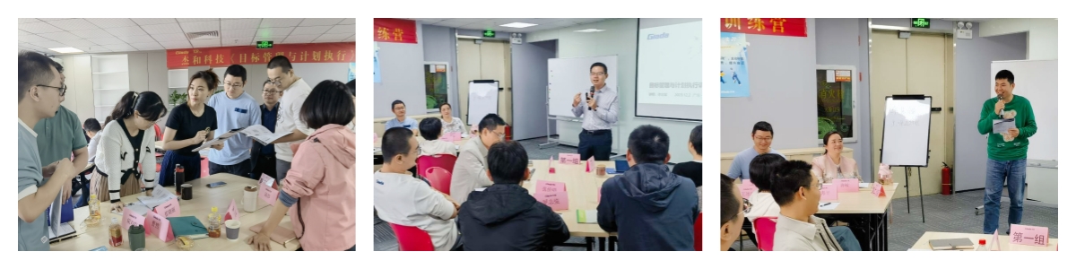本次培训外聘了专业的组织与人才培养专家进行授课,在培训课程中,沐鸣电子的国内与国际营销中心、产品部等,以及杰拓管理层的各个小伙伴分为五个小组,通过小组讨论、上台发言、随堂测验等互动形式,学习并了解到基于战略目标的组织执行力的重要性,目标设定的SMART原则与时间管理的方法,以及执行力提升的四大动力系统,现场学习氛围活跃,求知欲望强烈。