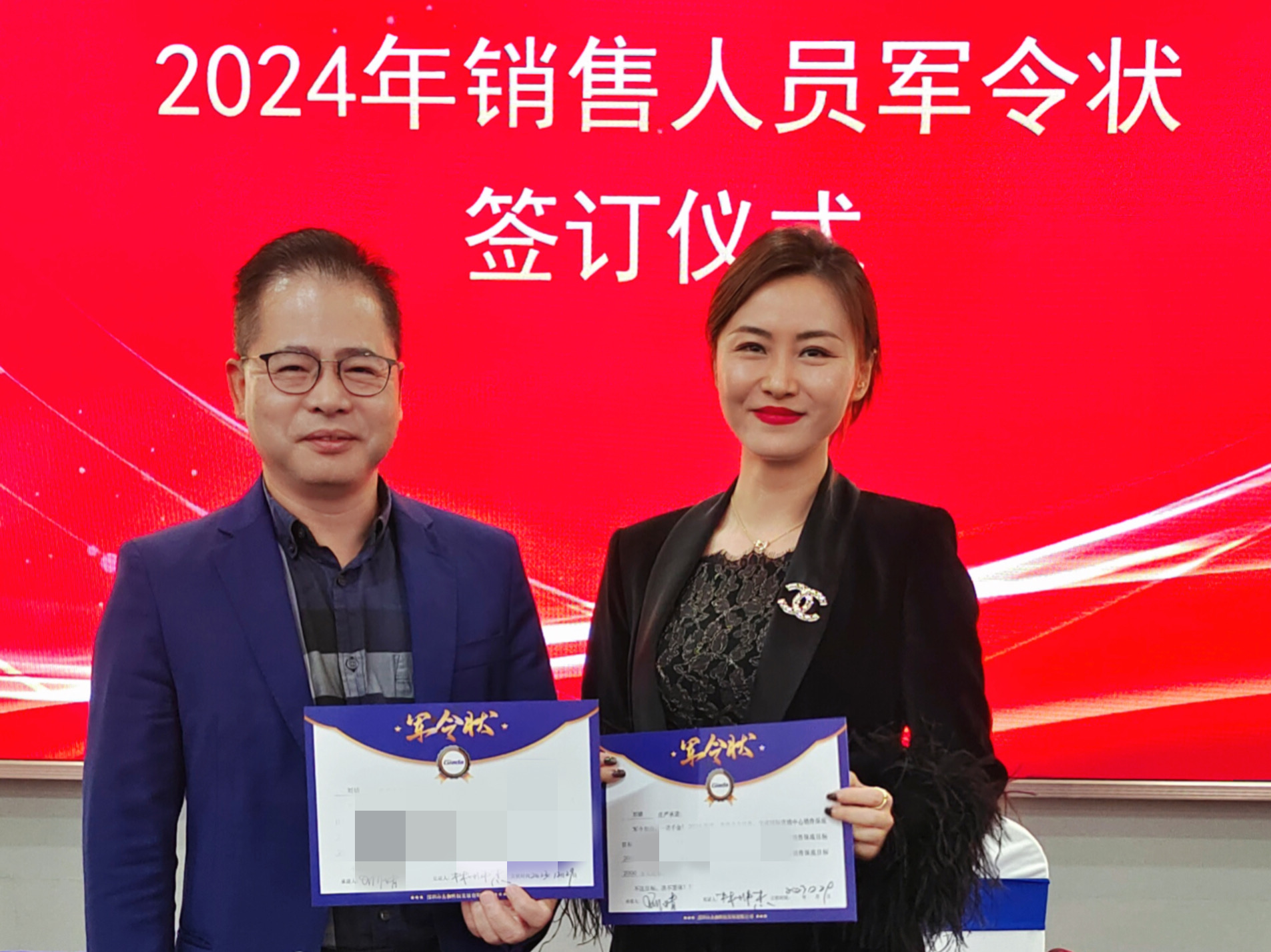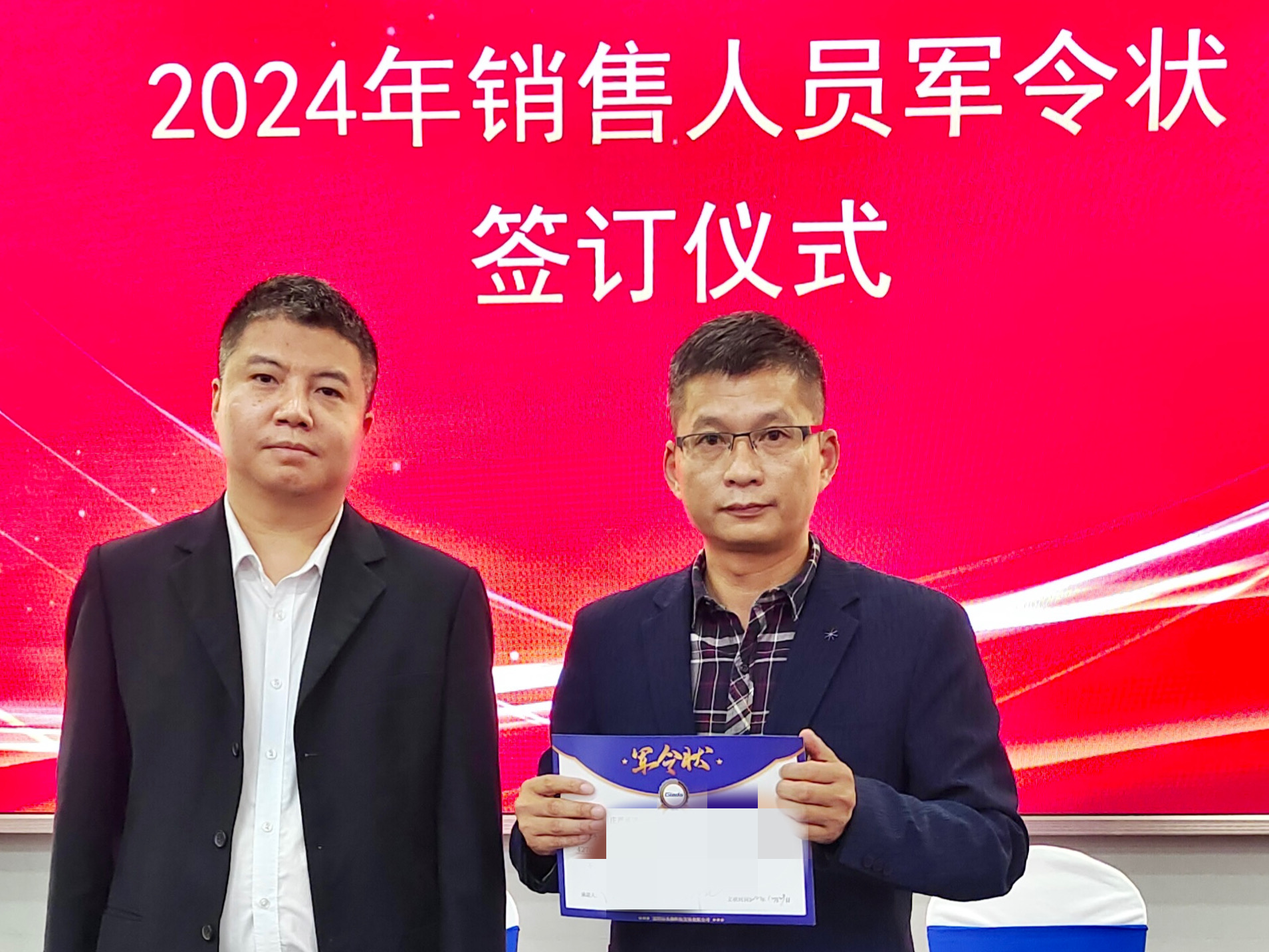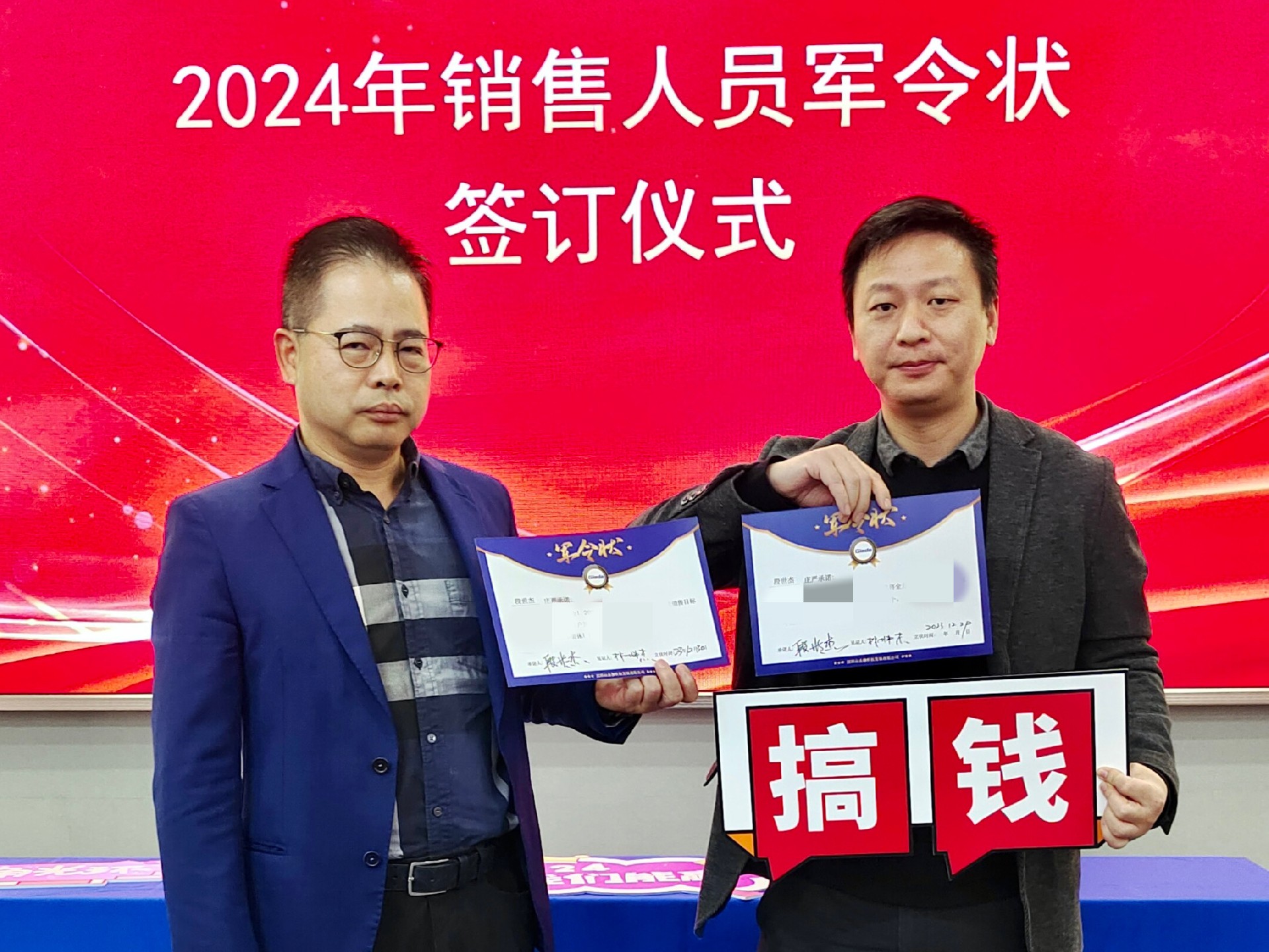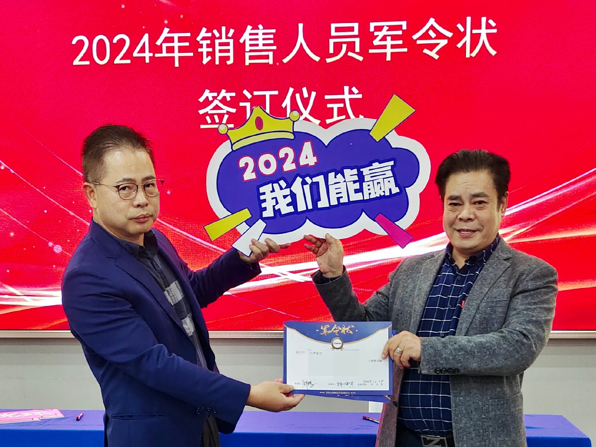 2024公司年度战略目标确立,言出必行,使命必达,国际/国内销售团队为了共同的目标开始军令状签约仪式。一纸军令状,是沐鸣电子科技与销售人员的双向承诺,是压力,更是动力。是不破楼兰终不还的决心,更是春风得意马蹄疾,一日看尽长安花的期待。