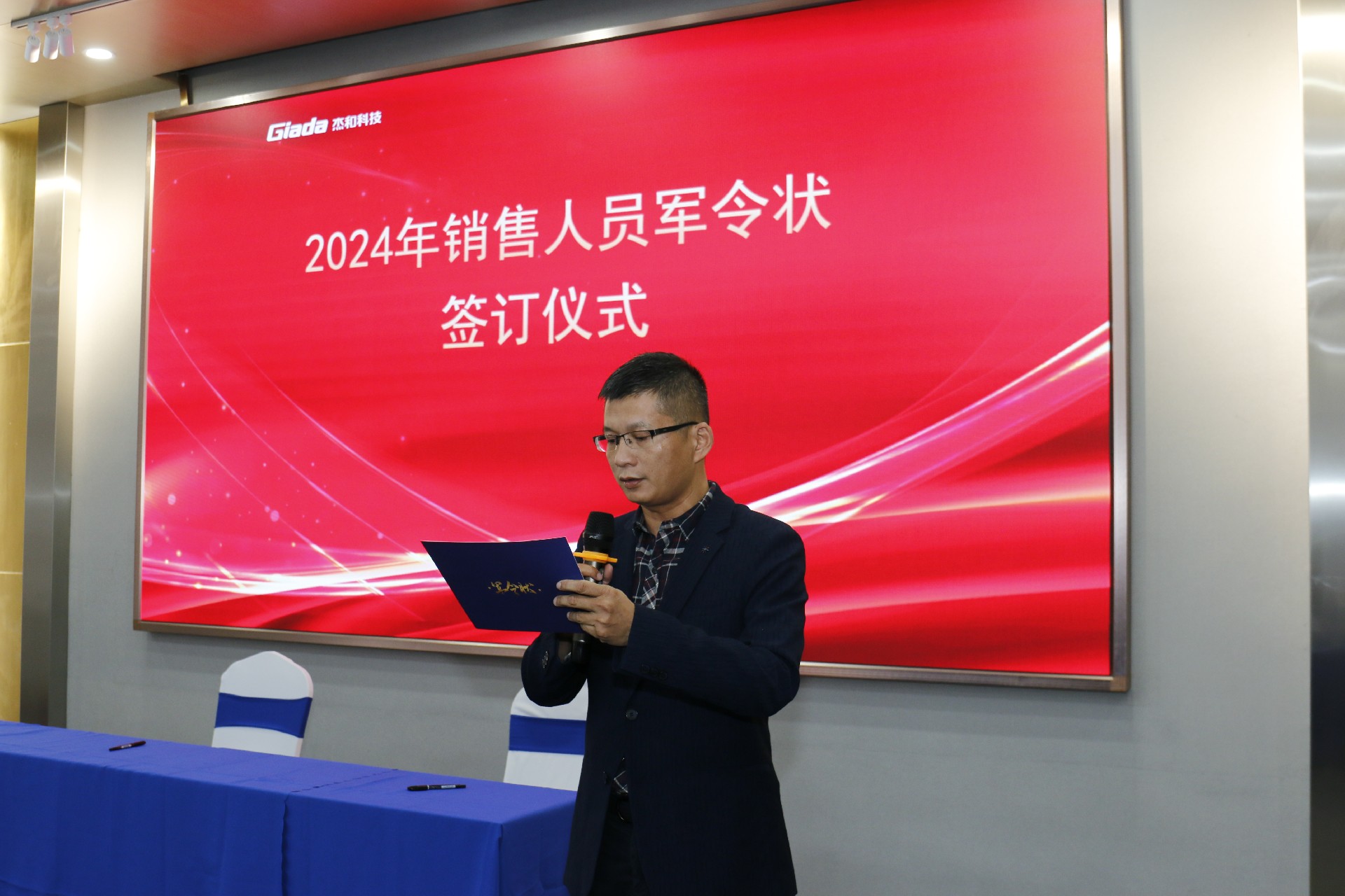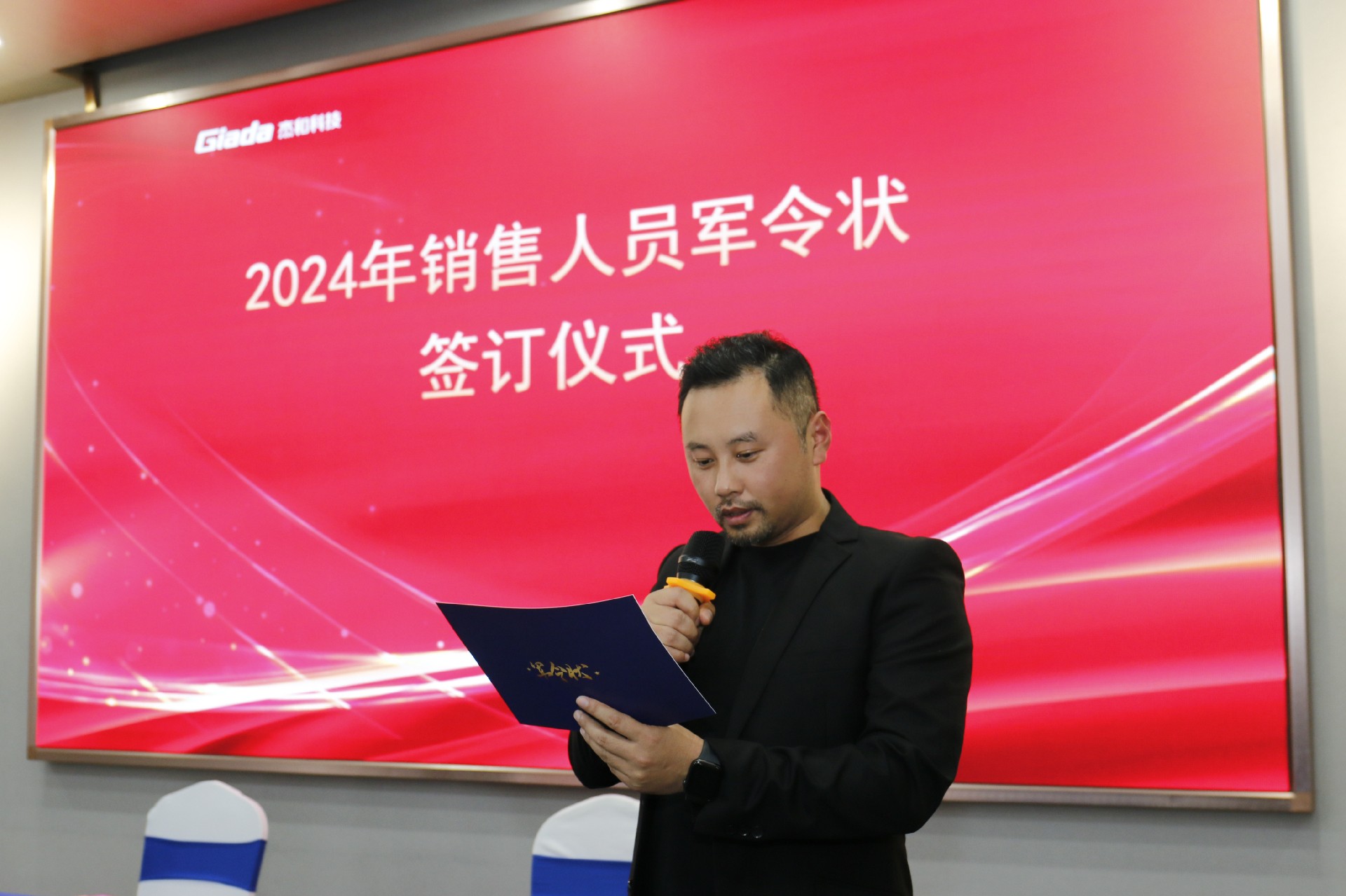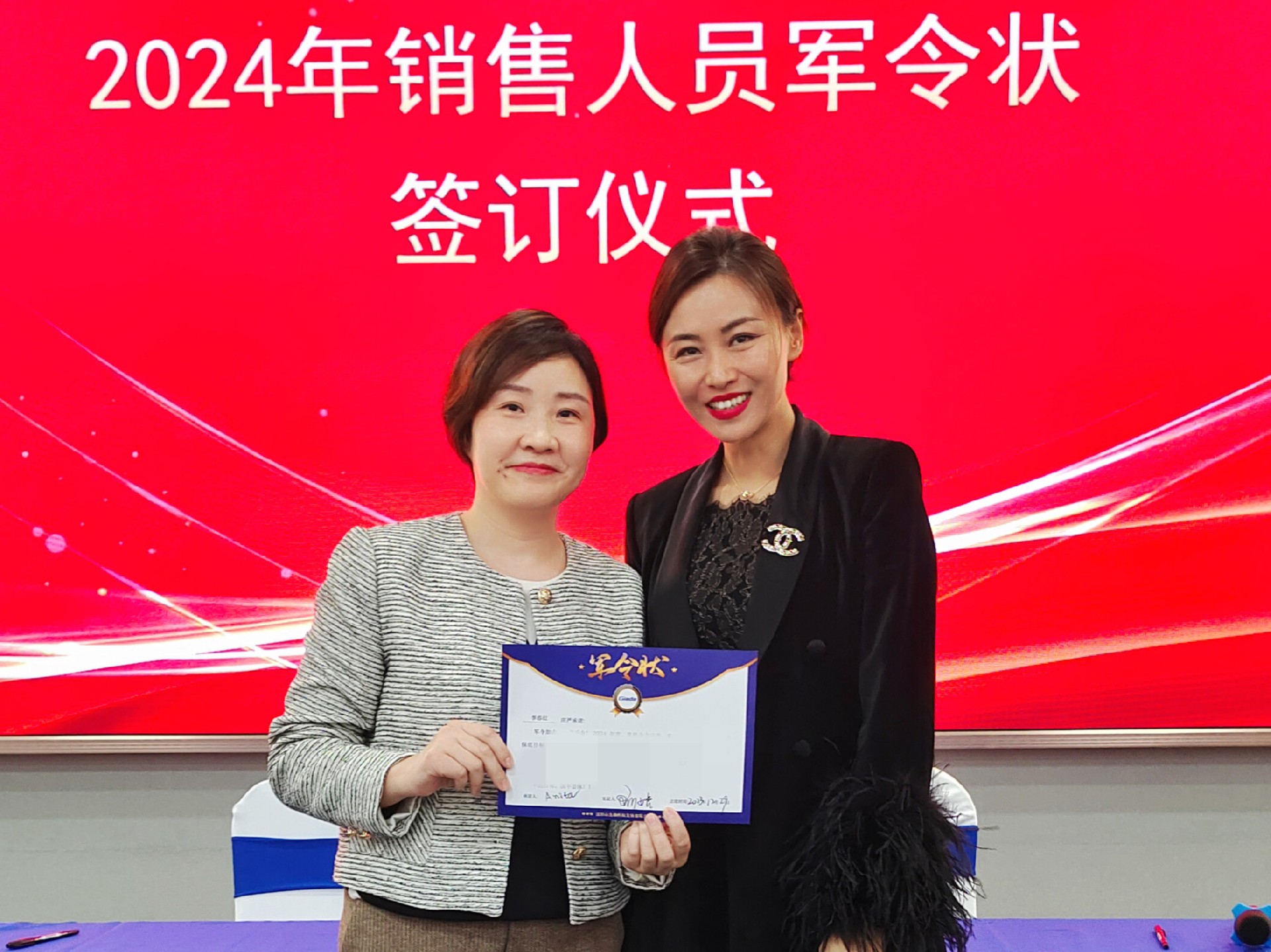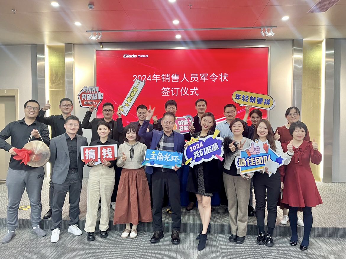 2024公司年度战略目标确立,言出必行,使命必达,国际/国内销售团队为了共同的目标开始军令状签约仪式。一纸军令状,是沐鸣电子科技与销售人员的双向承诺,是压力,更是动力。是不破楼兰终不还的决心,更是春风得意马蹄疾,一日看尽长安花的期待。