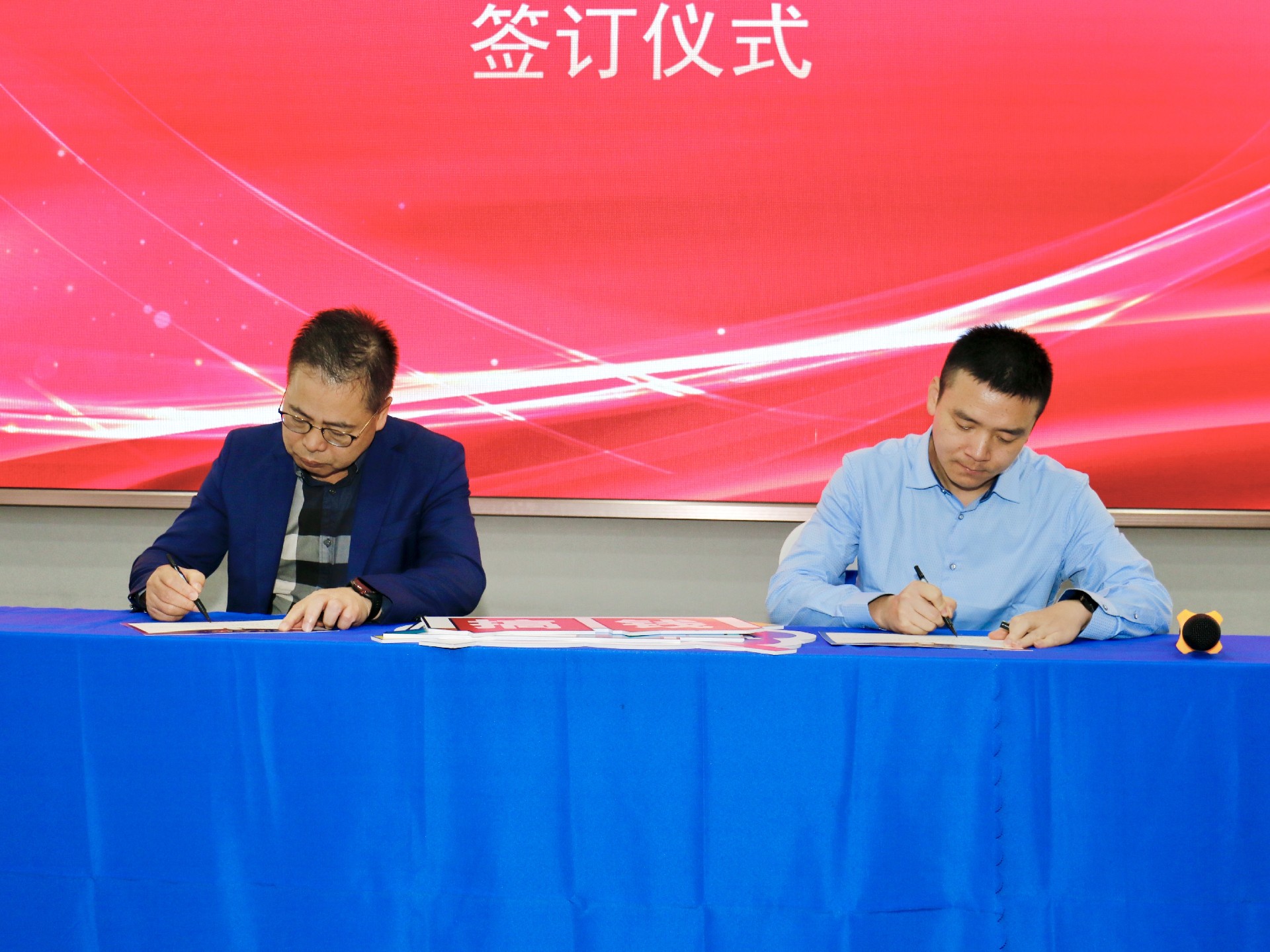 沐鸣电子科技董事长林总与国内营销中心负责人刘洋签约