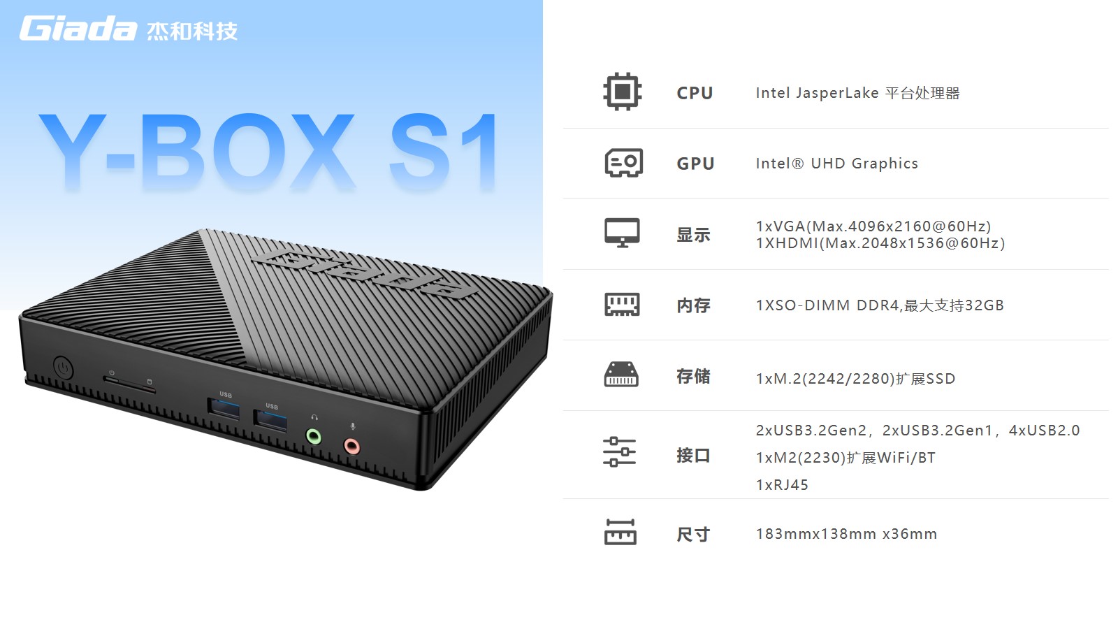 云终端Y-BOX S1搭载低功耗N5905处理器,TDP为15W,支持4核心 4线程,睿频频率最高可达2.9 GHz,配备无人值守JAHC,智能管理开关机,超低能耗,大大节约运营成本和电力成本。