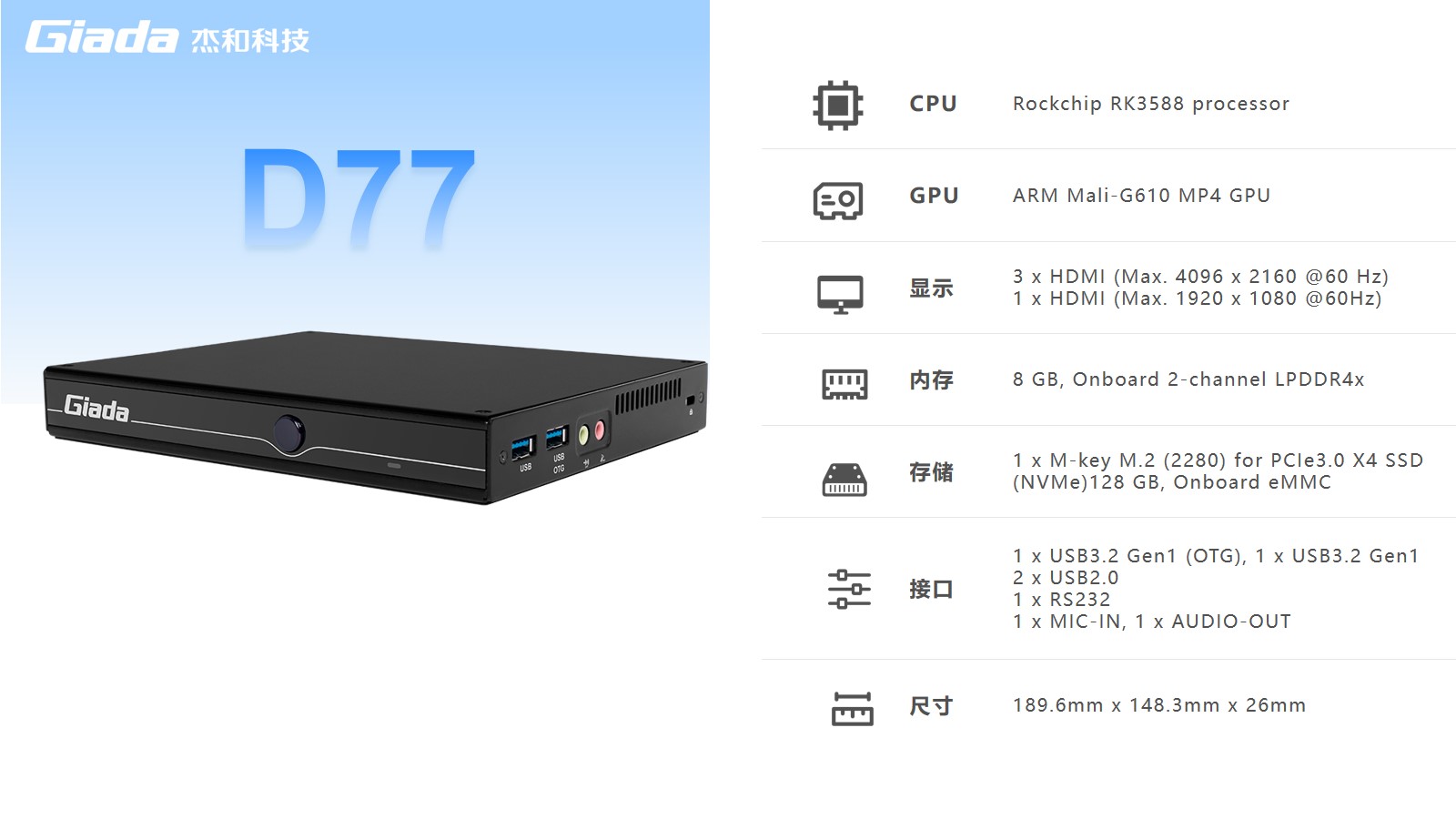 媒体播放器主要应用在大型商场、校园、户外大屏、超市、机场等公共场所,通过大屏幕终端显示设备,发布商业、财经和娱乐信息的多媒体专业视听系统,以其震撼的视觉效果、强烈的画面冲击力和高曝光率等特点,媒体播放器已经成为成为品牌传递信息、展示形象的重要渠道。沐鸣电子媒体播放器D77能够输出4个独立且支持4K UHD 分辨率的HDMI 屏幕,搭载八核架构,拥有6TOPS 算力的RK3588处理器,采用的ARM Mali-G610 MP4 GPU让D77 具备极其强大的图形性能。