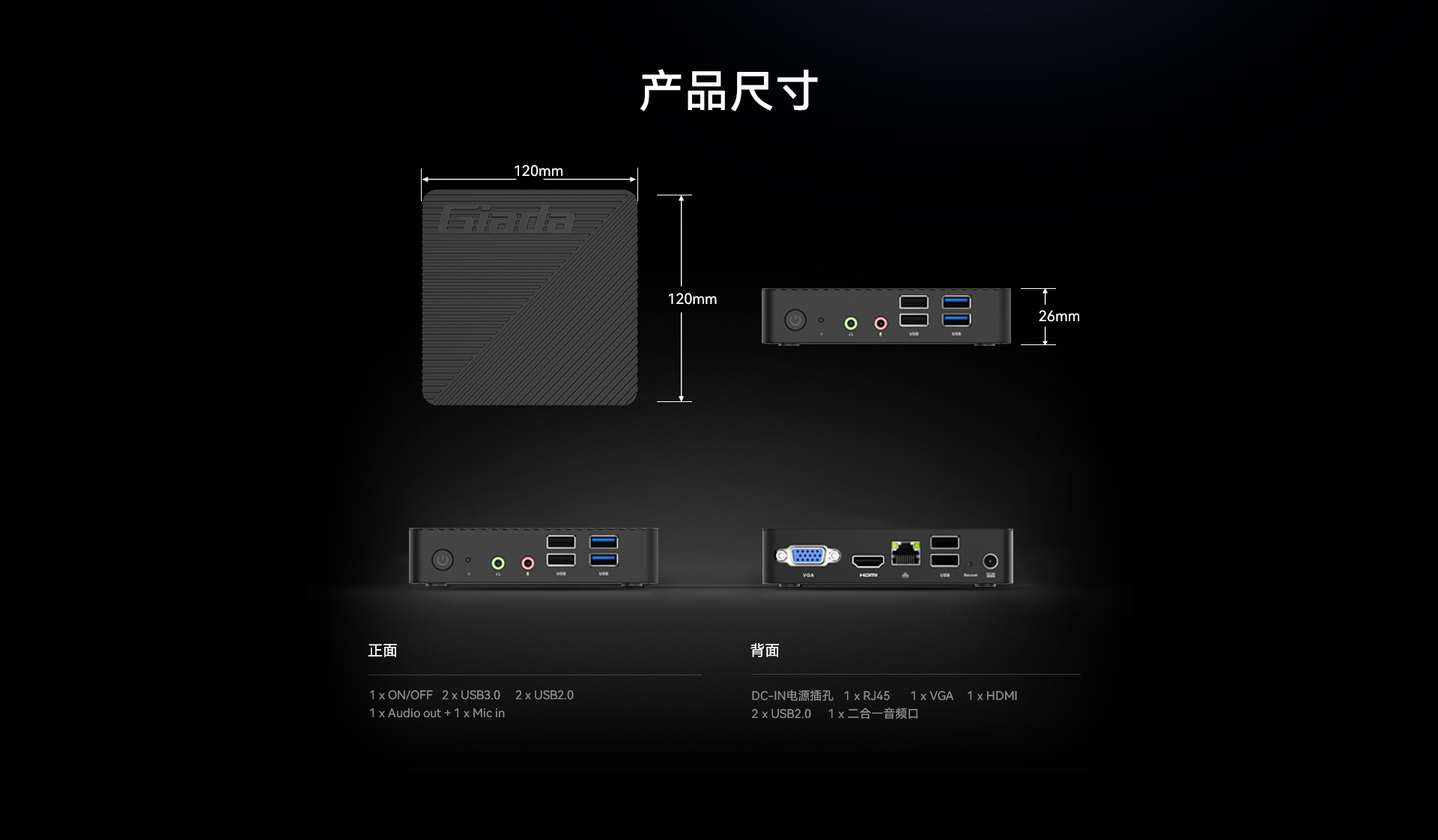 1 x HDMI,1xVGA双视频接口输出
