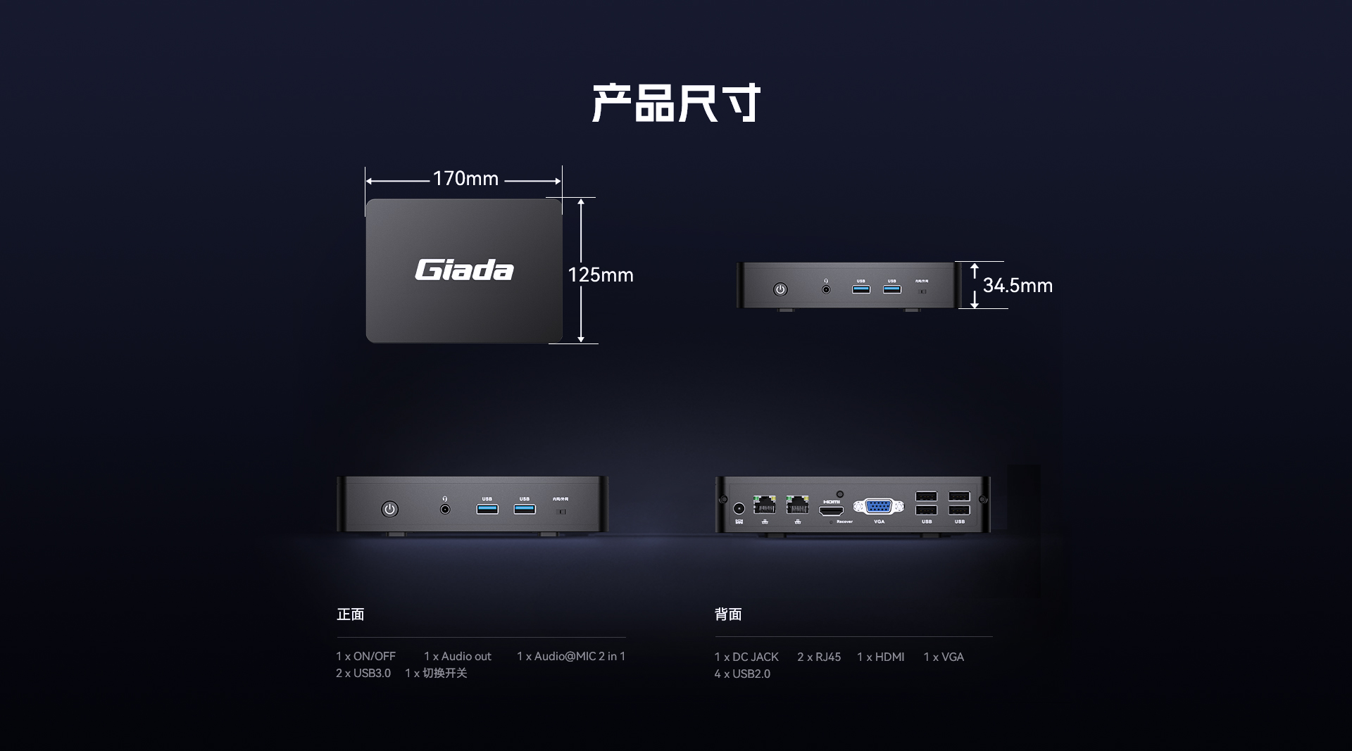 提供1xVGA,1 x HDMI™显示,支持4K@60Hz视频输出